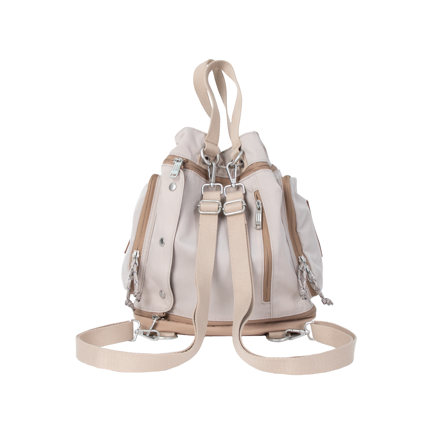Pyramid is a multifunctional Multi-way bag. You can switch it from crossbody to backpack freely at your will. Pyramid has a street-style look. Pyramid’s smart design makes it perfect for outdoor activities. The bucket bag comes with a detachable shell panel that helps with sorting your items and acts as a hanging toiletry.